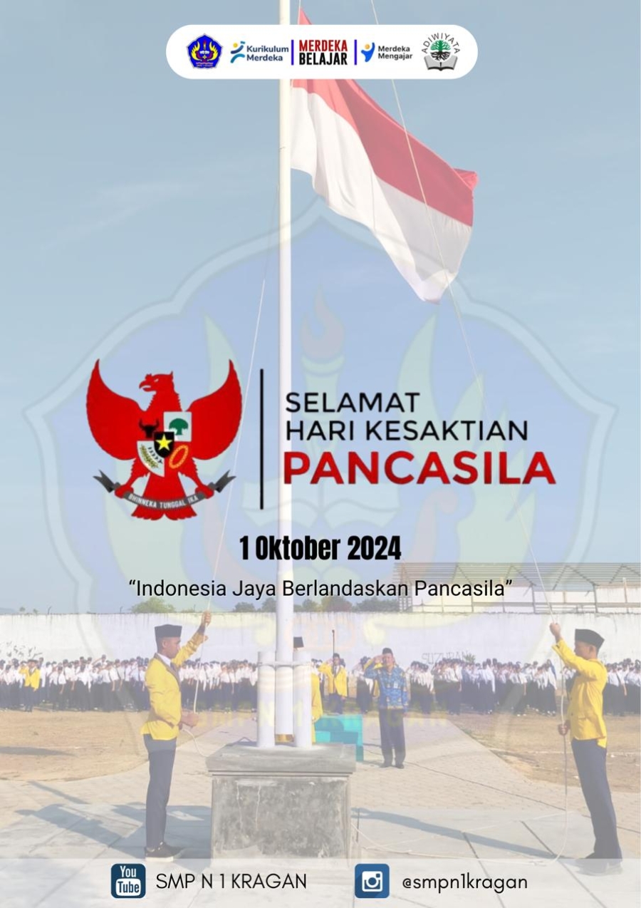 Selasa (1 Oktober 2024), SMP N 1 Kragan melaksanakan upacara pada pagi hari ini yang di ikuti oleh semua warga sekolah. Ibu Mamik Mudiningsih, S.Pd terpilih menjadi pembina upacara. Dalam amanatnya, Beliau menuturkan Peringatan Hari Kesaktian Pancasila bermula dari sebuah peristiwa tragis yang terjadi pada 1 Oktober 1965. Pada hari itu, enam jenderal dan sejumlah perwira militer lainnya ditahan dan kemudian dibunuh. Peristiwa ini dikenal dengan sebutan Gerakan 30 September (G30S) yang dipimpin oleh kelompok yang berhaluan komunis. Peristiwa ini memicu gejolak politik dan sosial di Indonesia, yang akhirnya mengantar Soeharto ke tampuk kekuasaan.