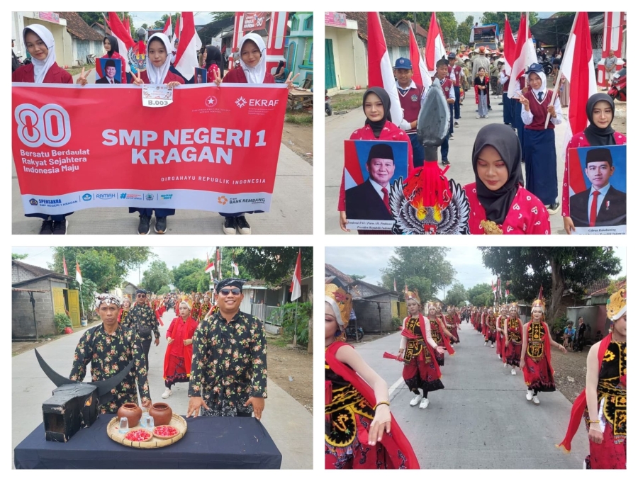 Dengan penuh semangat, SMP Negeri 1 Kragan bersama masyarakat Kragan berharap momen peringatan HUT ke-80 Kemerdekaan Republik Indonesia ini semakin mempererat persatuan dan menumbuhkan rasa cinta tanah air.