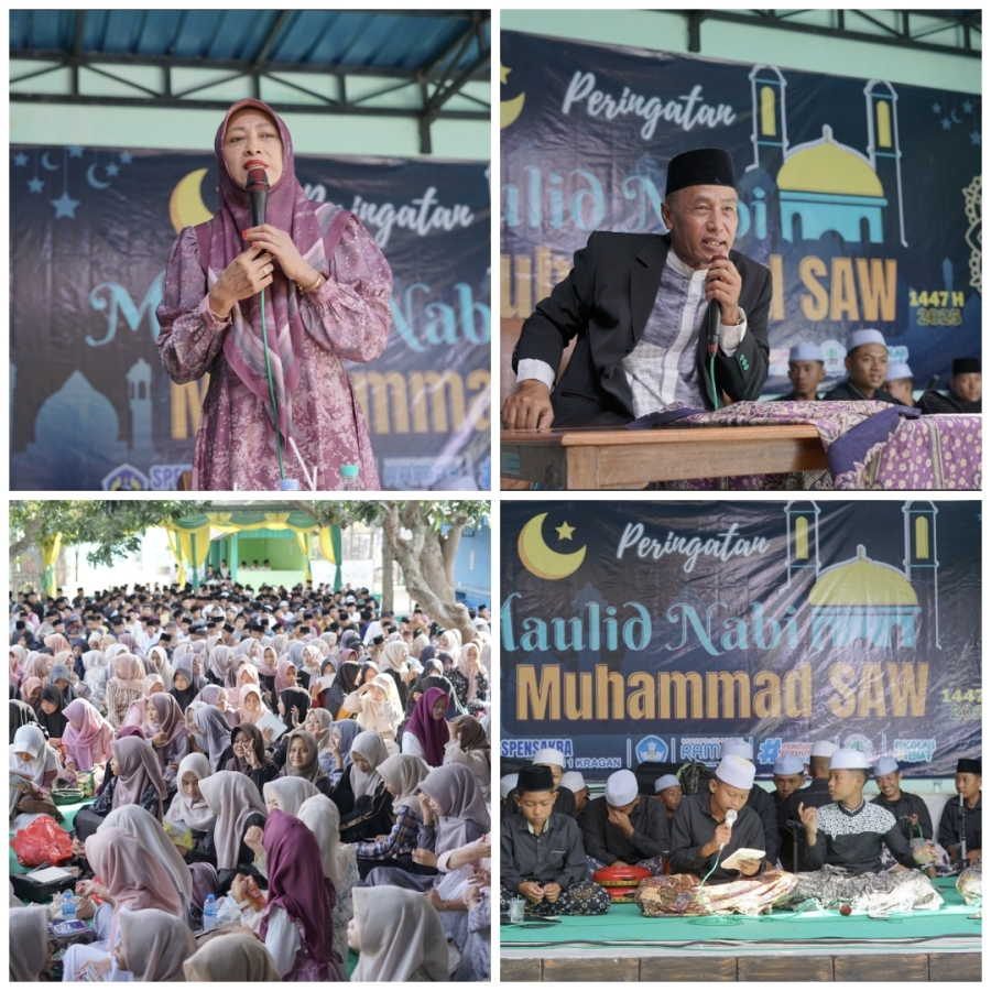 Pada hari Sabtu, 13 September 2025, SMP Negeri 1 Kragan menggelar acara peringatan Maulid Nabi Muhammad SAW dengan penuh khidmat dan semangat kebersamaan. Acara yang diadakan di halaman Kantin Spensakra Sehat ini, dihadiri oleh seluruh siswa, guru, dan staf sekolah. Peringatan Maulid Nabi tahun ini menjadi momen penting untuk mengingat kembali ajaran-ajaran Rasulullah SAW yang penuh dengan hikmah, serta untuk mempererat silaturahmi di antara warga sekolah.