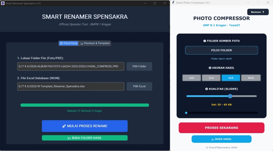 Sinkronisasi Identitas: Jalankan Smart Renamer untuk mengubah nama file sesuai dengan daftar NISN yang ada di database Excel/Dapodik.